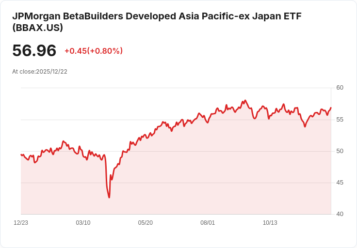 在全球市場持續波動的背景下,JPMorgan BetaBuilders Developed Asia Pacific ex-Japan ETF(BBAX)近日公佈了一項利好訊息:該基金將發放每股$0.5499的季度股息。此次股息將於12月26日支付,記錄日期為12月23日,而除息日同樣定在12月23日。這對於尋求穩定收益的投資者而言,是一個值得關注的機會。