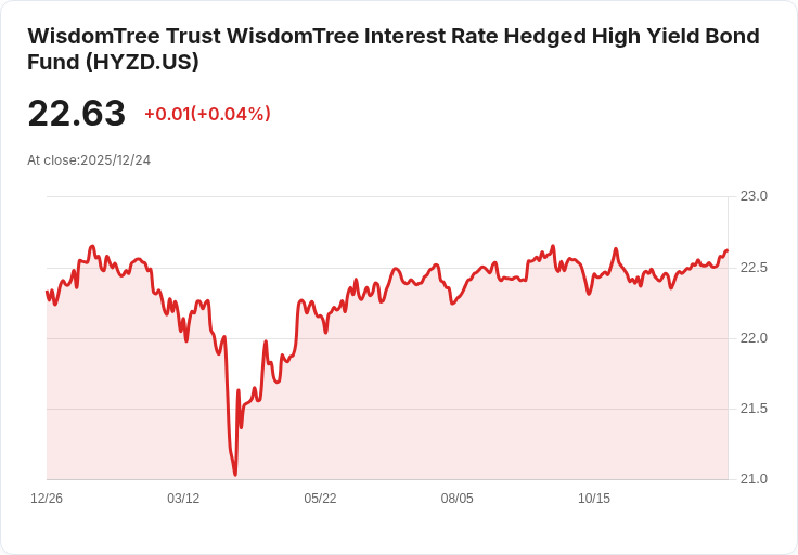 WisdomTree Interest Rate Hedged High Yield Bond Fund (HYZD) 宣佈將於12月30日支付每股$0.118的分紅,登記截止日為12月26日。