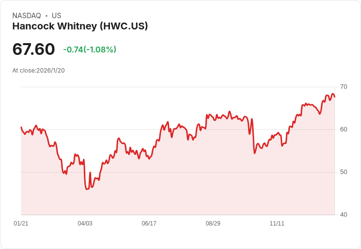 漢考克惠特尼公司在2025年第四季結束時表現強勁,並計劃於2026年實現穩健的淨利息收入和貸款增長,同時完成債券投資組合重整。