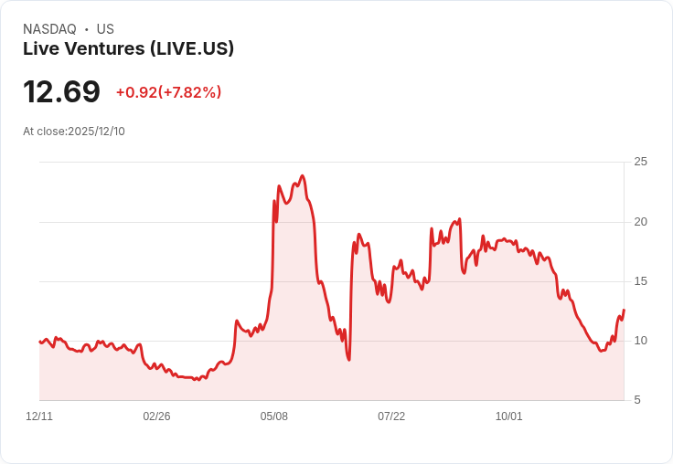 Live Ventures 最新財報顯示,每股盈餘為4.93美元,營收較去年下降5.9%,總資產和股東權益分別為3.86億美元及9530萬美元。