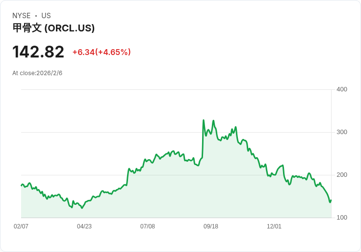 目前,Oracle的股價為142.82美元,年初至今下跌27%,而過去一年則下降17.3%。儘管如此,其三年及五年的回報率分別為69.9%和142.4%,顯示出長期表現良好。未來,投資者將關注Oracle如何將其AI工具轉化為更廣泛的客戶採用以及持續使用情況,以及其如何有效部署計劃中的450億至500億美元。