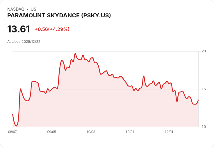 隨著科技巨擘Larry Ellison宣佈將親自支援帕拉蒙特斯凱丹克(Paramount Skydance)的收購提案,其股價應聲上揚,顯示市場對該交易的信心有所回暖。Ellison同意為這筆全現金報價提供高達404億美元的保證,使投資者對於交易的穩定性有了更清晰的認識,進一步推動股價上漲約4.3%。
