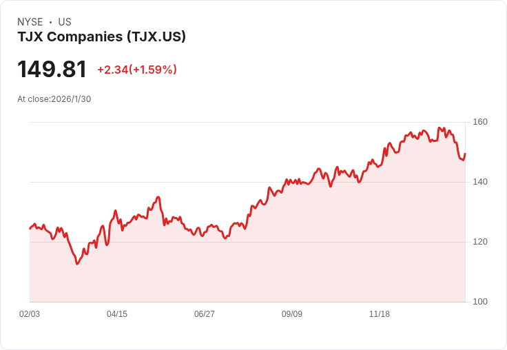 儘管 TJX 股價自年初以來已下降2.5%,但市場仍期待其在二月底公佈的第四季度財報。分析指出,雖然目前股價偏高,但強勁的假期銷售動能和全年的每股盈餘指引提升至4.63-4.66美元,讓投資者對未來持續抱有希望。隨著更多折扣零售商如沃爾瑪和 Ross Stores 受益於消費者的「降級潮」,TJ Maxx 的成長故事似乎仍在延續。