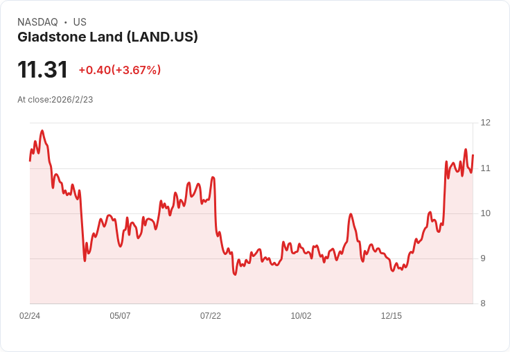 隨著格拉德斯通土地公司(Gladstone Land)定於2月24日發佈其2025年第四季的財報,投資者對該公司的表現充滿期待。根據市場共識,每股基金運營收益(FFO)預計將達到0.35美元,而總收入則有望達到3250萬美元。這些數字顯示出公司在農業地產投資領域的穩健成長。