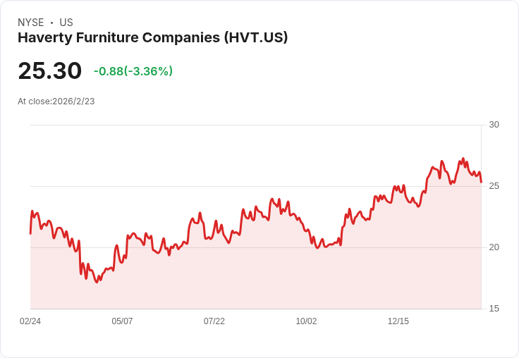 哈佛提傢俱(HVT)計劃於2月24日公佈第四季財報,市場普遍預期每股盈餘為0.48美元,收入達1.9747億美元。