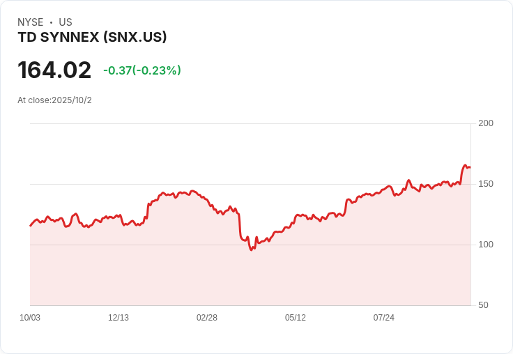 此外,TD SYNNEX也因策略多樣化和跨區域合作而受到支撐,儘管客戶集中度和宏觀經濟風險可能影響其表現。分析師指出,該公司的市盈率為17.4倍,低於同行的17.6倍,並且遠低於行業24.3倍的平均水平,目前股價164.02美元顯示出明顯的估值差距。儘管如此,分析師認為目前股價已合理反映未來表現。