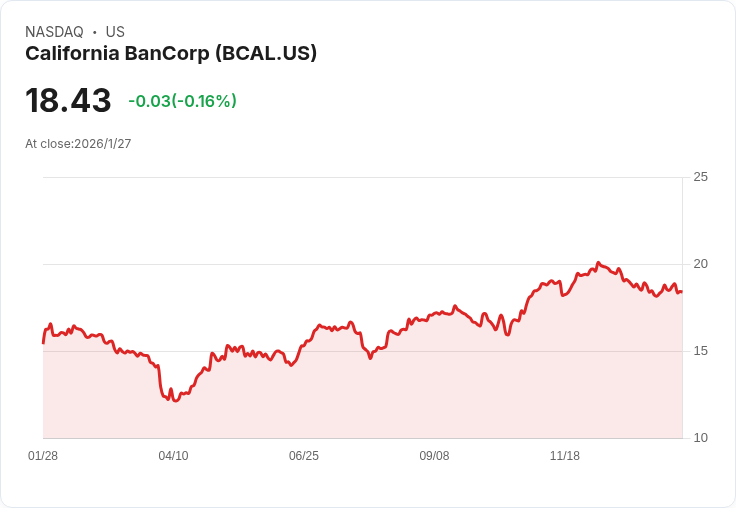 在最新的財報中,加州銀行California BanCorp(BCAL)公佈其2025年第四季表現,顯示出穩健的盈利能力。該行報告每股盈餘(EPS)為$0.50,營收則達到$4590萬。儘管如此,其總資產於2025年12月31日降至$40.3億,與前一季度相比減少了67.8百萬美元,下降幅度為1.7%。