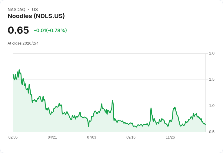 Noodles & Company (NDLS) 最近宣佈將於2026年2月18日實施1比8的反向股票拆分,此舉旨在恢復其在納斯達克市場上的合規地位,滿足每股至少1美元的最低出價要求。根據公司的公告,董事會已經批准了此比例,並在原先授權範圍內選擇了1比8的方案。