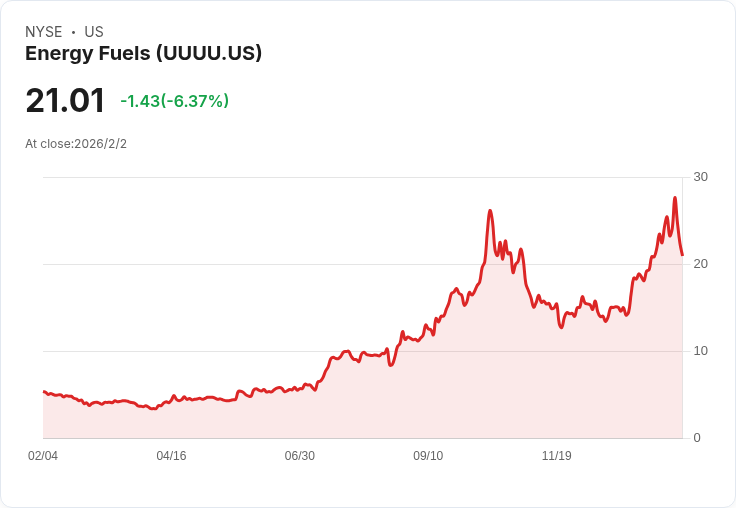 能源燃料(NYSEMKT: UUUU)股票在週二中午前暴漲15.6%,原因是有關特朗普政府「計畫金庫」的更多細節曝光。該計劃預計投入117億美元以儲備稀土金屬,並包括鈾等重要礦物,這讓投資者對能源燃料充滿期待。根據CNBC報導,「計畫金庫」將涵蓋內政部列出的50多種關鍵礦產,其中包含鈾和鋰。