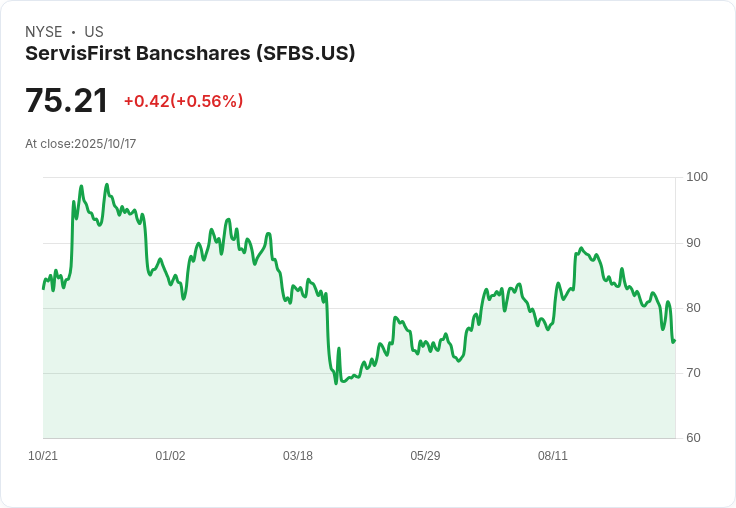 在最新發布的財報中,ServisFirst Bancshares(NYSE: SFBS)顯示其第三季非GAAP每股盈餘為1.30美元,與市場預期相差0.04美元。這一結果引起投資者關注,因為儘管該公司年增長率達到10.2%,但總營收136.28百萬美元卻比市場預測少了10.52百萬美元。