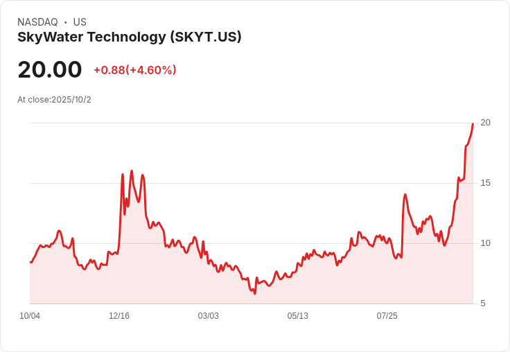 背景資料顯示,SkyWater科技專注於半導體和量子技術領域,其最新財報中,非GAAP每股盈餘為-0.11美元,超出預期0.07美元,營收59.1百萬美元也比預測多出1.64百萬美元,顯示公司業績持穩增長。隨著Fab 25收購案的推進,SkyWater已設定2026年600百萬美元的營收目標,未來成長潛力巨大。