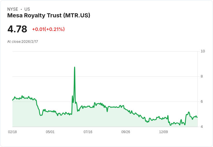 梅薩版稅信託(MTR)近日引起市場關注,因其宣佈2026年2月將不會向記錄持有人支付任何分配金。該決定源於信託的版稅產業務所產生的費用、收費及開支,已超過從石油、天然氣及其他碳氫化合物銷售中獲得的收入。
