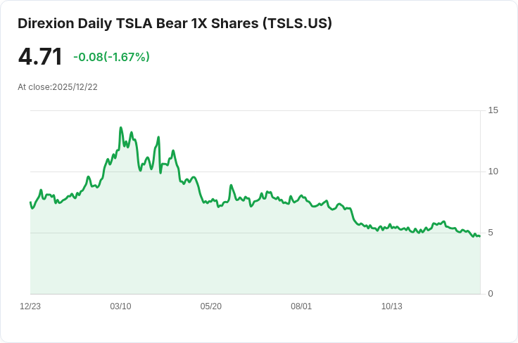 Direxion Daily TSLA Bear 1X Shares 是專門設計用以反向追蹤特斯拉(Tesla)表現的金融工具,因此受到那些看空特斯拉股價的投資者青睞。面對近期電動車市場的激烈競爭和不確定的經濟環境,此次分配金被視為對投資者的一種回報。