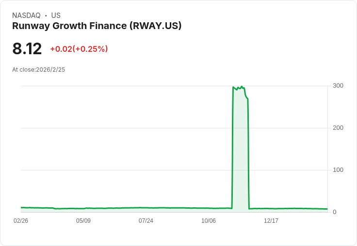 Runway Growth Finance 宣佈發放每股 $0.33 的季度股息,年度收益率達16.26%。