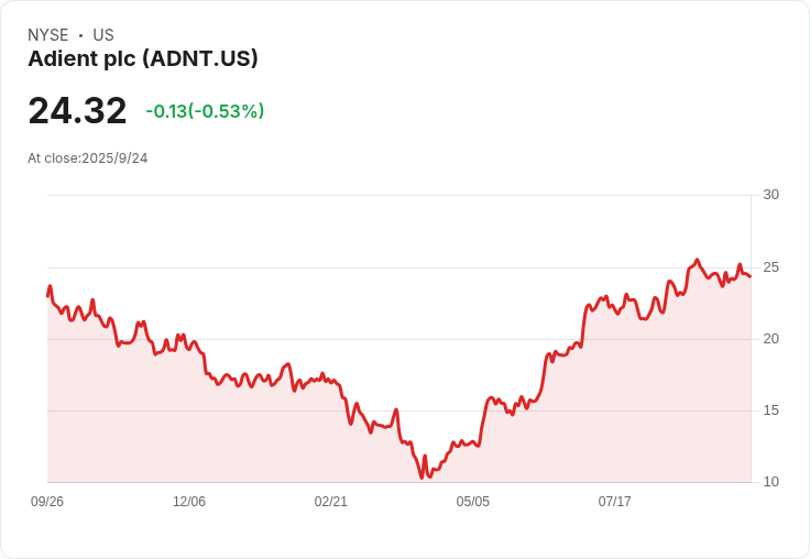 根據報導,Adient目前的估值比五年歷史EBITDA倍數低20%以上,而行業平均僅低7%。這顯示出其未來可能會因增長軌跡和毛利率擴張而改善估值倍數。Wells Fargo還上調了Adient的調整後EBITDA預測,並將目標股價由24美元提高至31美元。在早盤交易中,Adient的股價上漲了2.2%,反映市場對其前景的信心。