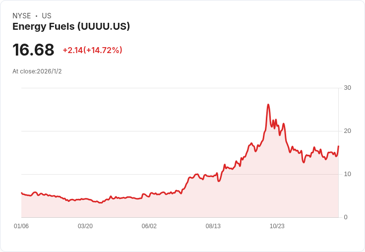 能源燃料公司(UUUU)股價上週飆升13.9%,因投資者看好冬季能源需求及美國核能復興。