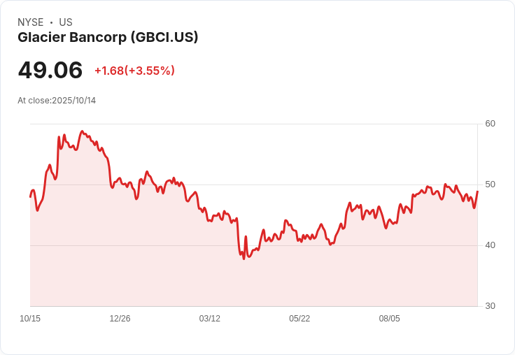 與同業相比,其他銀行如FB Financial和Citigroup已經發布了第三季業績,分別顯示94.2%和9.3%的年增幅,且均超出預期。儘管整體銀行板塊的股價在過去一個月下跌了1.5%,冰川銀行卻逆勢上漲了1.9%。目前,分析師對其目標價格的預測為54美元,而當前股價為49.06美元。