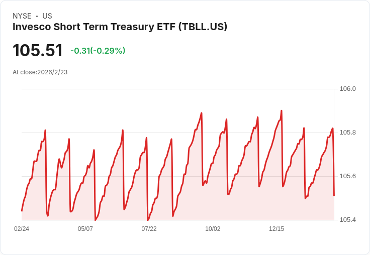 Invesco短期國債ETF (TBLL) 宣佈將於2月27日支付每股$0.3230的分配金,30天SEC收益率為3.60%。