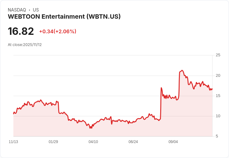WEBTOON娛樂在第三季度財報失利後,預測第四季營收將下降5.1%-2.3%,股價隨之重挫。