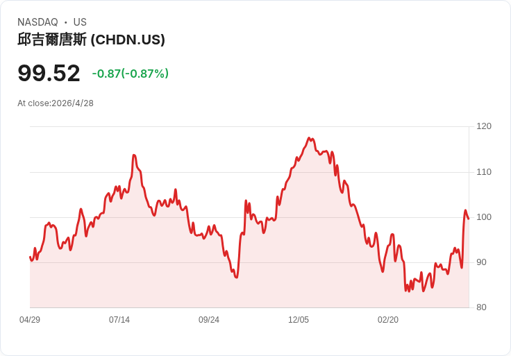 背景與現況 截至約每股 US$99.52,CHDN 過去7天上漲9.6%、30天上漲17.7%;但年初迄今仍下跌11.1%,過去一年回報為9.3%。更長期來看,三年報酬下跌32.5%、五年則略降2.4%。這組資料顯示近期動能強化,但公司長期表現並不穩定,投資人應區分短線情緒與基本面變化。
