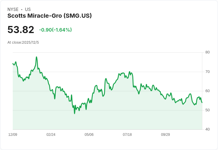 Scotts Miracle-Gro (SMG)最近宣佈獲得哥倫布隊新球場的命名權,同時重組核心信貸設施,這一系列動作引起了市場的廣泛關注。然而,即使有這些積極訊息,其過去一年總股東回報率卻下降了25.41%,今年至今股價更是下跌18.09%,最新股價為53.82美元,顯示出市場情緒依然疲弱。