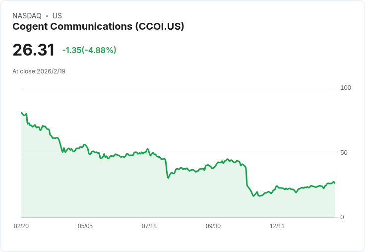 Cogent Communications Holdings, Inc.(CCOI)近日公佈2025年第四季度財報,雖然每股虧損為 -$0.64,較預期改善了 $0.33,但其總營收卻以 2.41 億美元的表現錯失分析師預測。這一數字相比去年同期下降了4.7%,顯示公司在收入增長方面面臨挑戰。