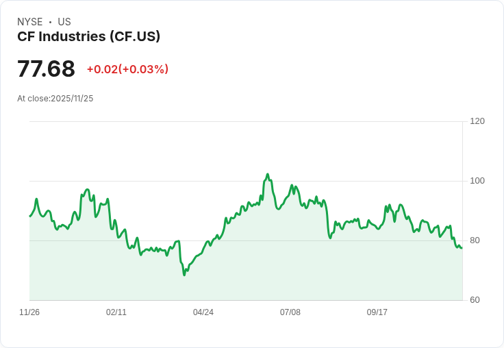 威爾斯法哥近期宣佈開始對CF Industries Holdings, Inc. (NYSE:CF)進行分析,給予其「增持」評級及100美元的價格目標,此數字略低於先前的105美元預期。根據報導,CF在2025年第三季度交出了亮眼成績,收入達到16.6億美元,同比增長21.09%,超出分析師預測。此外,其淨利潤為3.53億美元,每股稀釋盈餘為2.19美元,EBITDA則為6.71億美元。