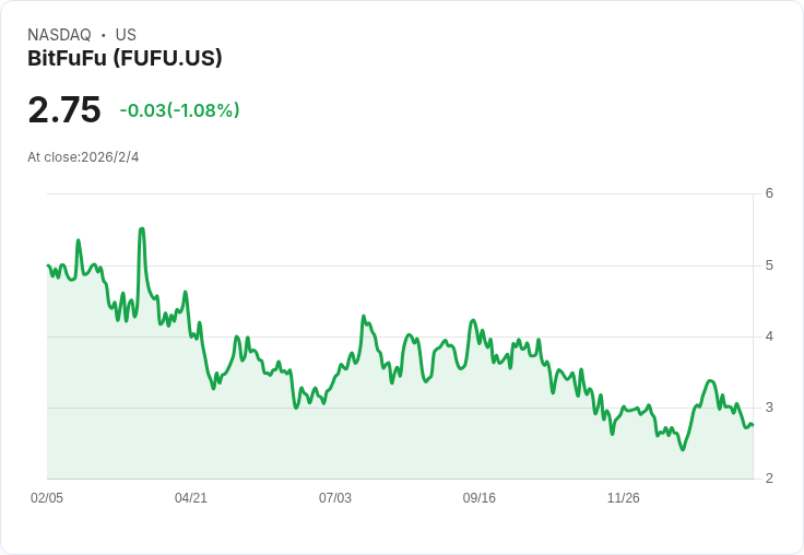 儘管近期位元幣價格波動不定,BitFuFu的股票在盤前交易中上漲了0.36%,目前報價為每股2.76美元。分析指出,在位元幣價格下跌的情況下,基礎設施企業如BitFuFu將受益匪淺,未來市場表現值得期待。
