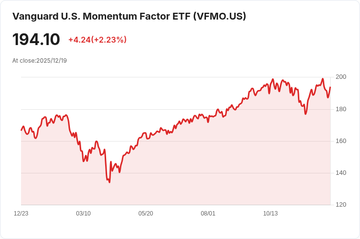 在近期的公告中,Vanguard美國動能因子ETF(VFMO)確定了每股$0.3505的季度分配金。這項分配金將於12月26日支付給截至12月23日的股東,而除息日則設定在同一天,即12月23日。根據最新資料,截至11月30日,該基金的30天SEC收益率為0.40%。