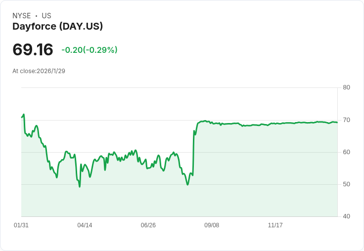 隨著Thoma Bravo對Dayforce的收購進展,近日該公司股價小幅上漲0.2%。根據CTFN報導,美國貨幣監理署(OCC)預計將於2月6日批准這項交易,若順利透過,整個交易有望在2月中旬完成。高盛與摩根大通作為此交易的財務顧問,亦計畫在未來幾周內提供所需貸款。去年8月,Dayforce已與Thoma Bravo達成最終協議,決定轉為私人企業,並承諾向股東支付每股70美元的現金。在市場分析中,有觀點認為儘管收入增長,但仍不足以支援目前的股價走勢,投資者應謹慎評估後續發展。隨著交易接近尾聲,Dayforce的未來動向值得持續關注。