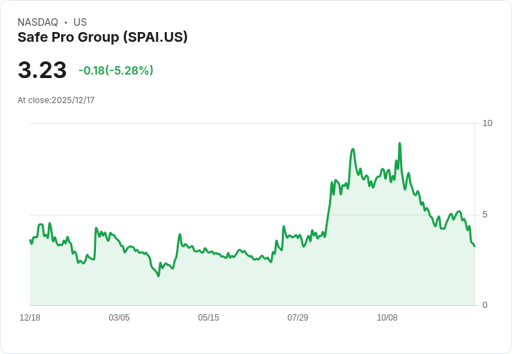 安全專業集團(Safe Pro Group, SPAI)在最新公告中宣佈,將啟動一項為期一年的股票回購計畫,總金額可達300萬美元。此訊息引發市場熱烈反應,該公司股價在盤前交易中大幅上漲18.58%,報價達到3.83美元。