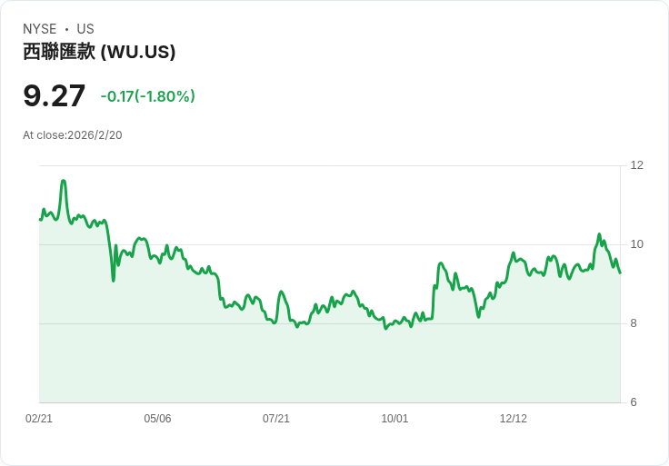 西聯匯款(Western Union)在週五早盤交易中,股價大幅下挫6.1%,原因是該公司第四季的營收表現低於分析師預期。儘管其2026年的每股調整收益(EPS)指引與華爾街預測基本一致,卻無法抵消市場對當前業績的失望情緒。根據公司的預測,2026年調整後的EPS預計在$1.75至$1.85之間,中位數為$1.80,略高於市場共識的$1.79。此外,全年營收增長預估在5%至8%之間,意味著總額將介於$4.25B至$4.37B之間。