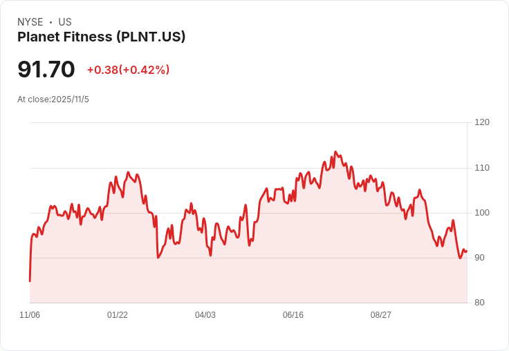 Planet Fitness第三季財報亮眼,調整後每股盈餘達0.80美元,營收增長13%。公司提升未來成長預測,股價在盤前交易中上漲逾6%。