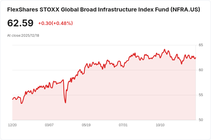 FlexShares STOXX Global Broad Infrastructure Index Fund(程式碼:NFRA)近日宣佈將於12月26日支付每位股東$2.6202的季度分配。這一公告吸引了眾多投資者的關注,因為該基金專注於全球基礎設施領域,受到市場熱烈追捧。根據公告,只有在12月19日前持有股份的股東才能享受此次分配,而同一天也是除息日,意味著新進股東無法參與本次收益。