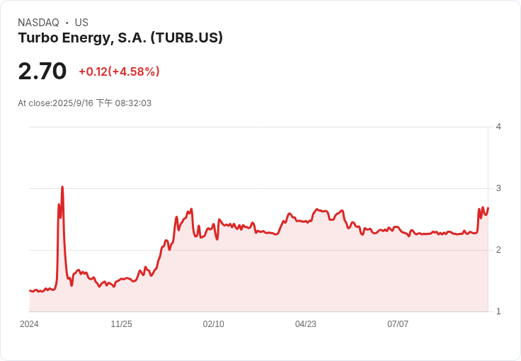 值得注意的是,在訊息發布後,TURB的股價在週二盤前交易中飆升147.8%。這反映了投資者對該公司的未來潛力充滿信心。隨著全球對清潔能源需求的增加,Turbo Energy有望成為行業領導者之一。