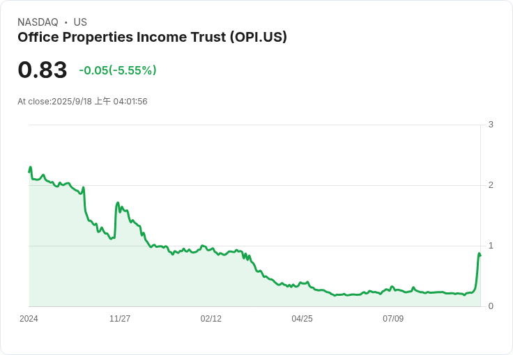 辦公室房地產信託(OPI)因考慮申請破產,股價驟降29%,面臨超過9億美元的債務到期壓力。