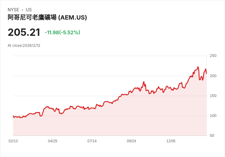 加拿大礦業巨頭Agnico Eagle(AEM)近日宣佈,其董事會已批准將季度股息提高12.5%,新股息為每股$0.45,相較於先前的$0.40有所增加。此項變更反映出公司在當前經濟環境中的強勁表現,並預計將吸引更多投資者的關注。此次股息將於2026年3月16日支付給截至2026年3月2日登記的股東。