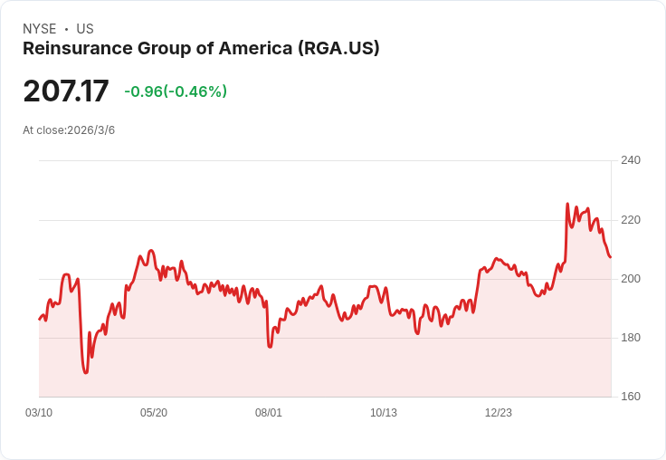 威爾斯法哥近期針對再保險集團(Reinsurance Group of America, Incorporated,NYSE:RGA)的前景做出了積極調整。該行於2月25日宣佈將其目標股價提升至261美元,較之前的238美元有所增加,同時保持了對該公司的「增持」評級。這一變動反映出他們對RGA在生命保險及再保險領域的看好,儘管業界指引與市場共識相符或略低,但仍認為RGA具有競爭優勢。