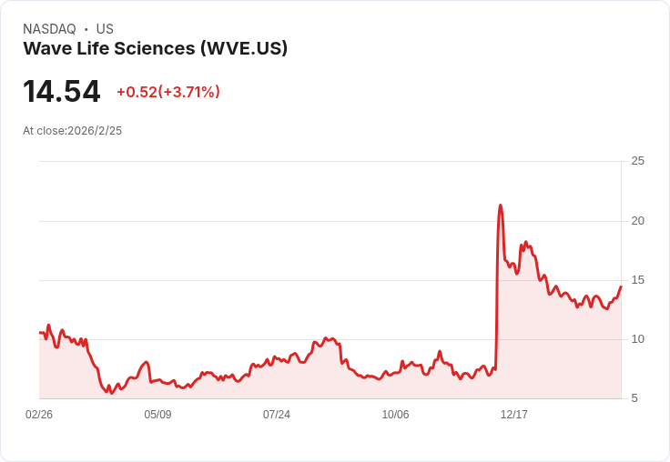 Wave Life Sciences Ltd.(WVE)近日發佈了其2025年第四季度的財務報告,引起投資者關注。該公司本季度GAAP每股虧損為0.30美元,雖然未能達到市場預期,卻在收入方面表現亮眼,實現了17.24百萬美元的營收,比預期多出1.56百萬美元。然而,與去年同期相比,收入下降了79.4%,顯示出公司面臨的挑戰。