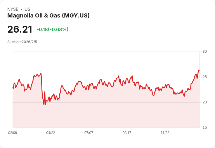 瑪格諾利亞石油公司第四季度每股盈餘0.37美元,收入3.1762億美元均超出市場預期,並預測2026年生產增長約5%。