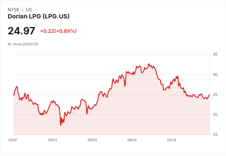 Dorian LPG股價上漲9.3%,因Pareto Securities將其評級從持有提升至買進,預測2026年第一季運價表現超出市場共識。