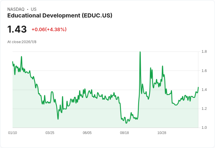 教育發展公司(EDUC)在2026年第三季的財報電話會議中,總裁兼首席執行官克雷格·懷特表示,公司成功完成了Hilti Complex的出售,這一舉措不僅為股東帶來收益,也讓公司擺脫銀行限制,為未來的增長鋪平道路。該筆交易使得公司獲得1220萬美元的單次利潤,雖然淨收入較去年同期有所下滑,但盈利能力顯著改善,實現了780萬美元的淨利潤。