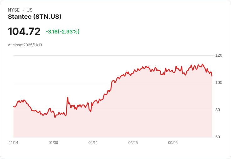 Stantec 自上市以來,一直致力於為客戶提供高品質的服務和創新解決方案,並在過去幾年中保持了穩定的盈利能力。根據最新資料,公司在市場上的表現良好,吸引了眾多長期投資者的關注。儘管面臨全球經濟波動的挑戰,Stantec 繼續展示出強大的業務韌性和增長潛力。