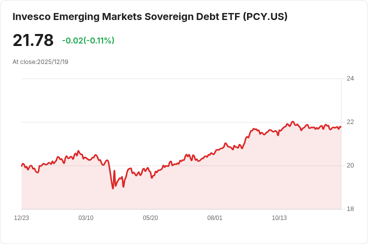 Invesco新興市場主權債ETF(PCY)宣佈將於12月26日支付每股$0.1069的股息,記錄日期為12月22日。