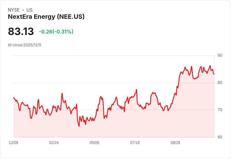 在最新公告中,NextEra能源(NEE)宣佈將其2025及2026年的調整後獲利預測上調,以因應資料中心帶來的電力需求激增。根據公司於紐約舉行的2025投資者會議所發佈的8-K檔案,NextEra更新了2025年的調整後每股收益預期至$3.62-$3.70,相較於之前的$3.45-$3.70;而2026年則從$3.63-$4.00提升至$3.92-$4.02。此外,公司還計劃到2035年前實現至少8%的長期調整後每股收益增長。