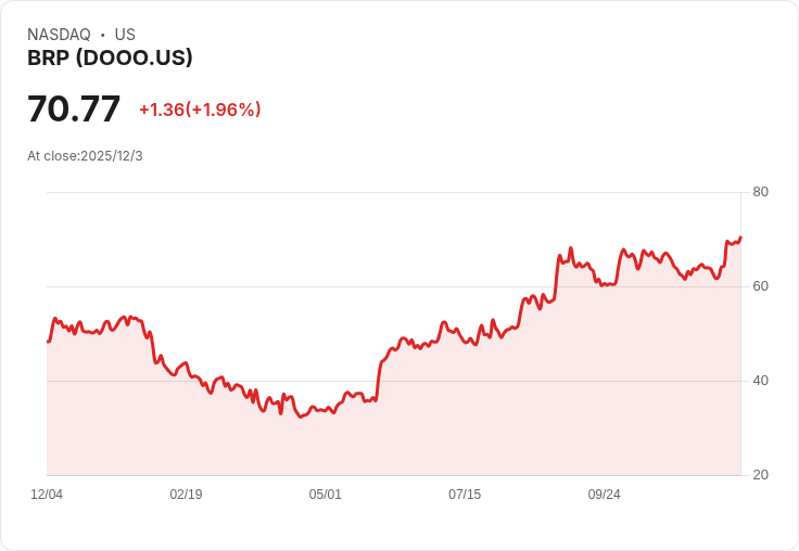 BRP公佈第三季非GAAP每股盈餘為C$1.59,營收年增14.2%至C$22.5億,同時調高2026年財務預測。