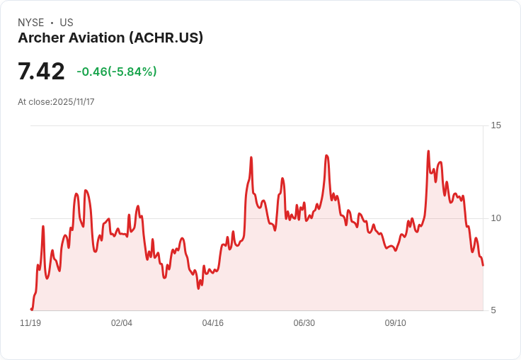 Archer Aviation因與防禦AI公司Anduril簽署協議,其股價在週二上漲近4%,並將供應電動動力系統以加速無人機發展。