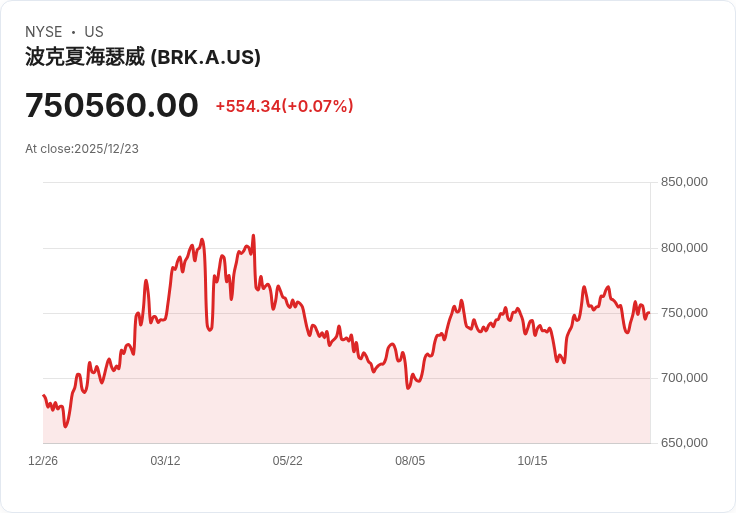新聞:隨著沃倫·巴菲特即將在2026年退休,伯克希爾哈撒韋的未來引發廣泛關注。自1965年以來,該公司只在20個年度內落後於標準普爾500指數,而今年其回報率為15.8%,低於標普500的26.3%。儘管如此,自巴菲特接手以來,伯克希爾股價已上漲超過550萬%。