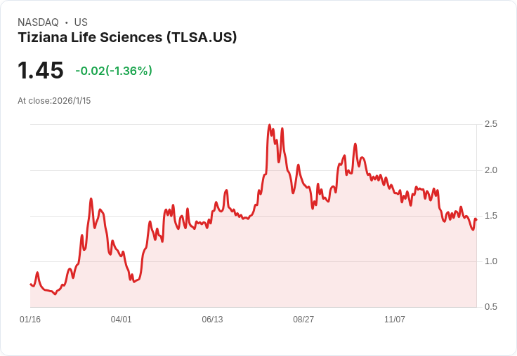 Tiziana Life Sciences以每股1.25美元的價格完成640萬股直接配售,募得800萬美元資金,但股市反應冷淡,股價預盤下滑。