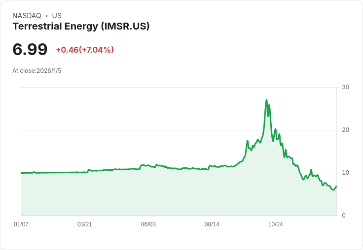 在週二的交易中,小型模組化核能發電廠開發商特拉斯地能源(Terrestrial Energy, IMSR)股價飆升25.1%,原因是該公司宣佈與美國能源部(DOE)簽署了針對TETRA計畫的協議,以建設和運營一座試點核反應堆。這項合作將支援其整合熔鹽反應堆(IMSR)的開發。